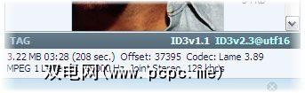 特定的详细信息,例如文件大小,播放持续时间,使用的编解码器,压缩标准(例如MP3) ,右下角提到了采样率,标签类型,记录类型(单声道/立体声/联合立体声)。