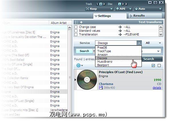 该窗口为您提供搜索专辑和歌曲信息的不同方法。将 Freedb 和 Tracktype 用于纯文本信息(无专辑封面)。 Amazon 和 Discogs 为您提供了包括封面的所有信息。多个来源会有所帮助,因为其中任何一个都可能未列出晦涩的相册。单击齿轮图标并检查设置,然后再更新标签信息。另外,在保存之前预览结果。将会进行的任何更改都将以紫色显示。您还可以切换到标签编辑器并手动调整一些信息。