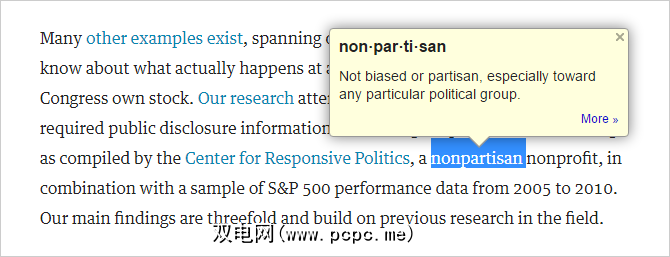 您是要学习英语作为一种新语言,还是浏览大量复杂的学术文章,或者只是想扩展个人词汇量, Google词典是已安装的出色扩展。有了它,定义就只需要单击即可。