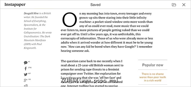 Instapaper 对此非常有用,特别是因为它为高级用户提供了许多功能。但是我真正喜欢的功能之一就是能够将文章发送到Kindle。 Kindles使用的e-Ink技术带来了惊人的阅读体验,那么为什么不阅读它呢?你的眼睛会感谢你的。 (如果还没有,请查看我们的指南,以购买合适的Kindle。)