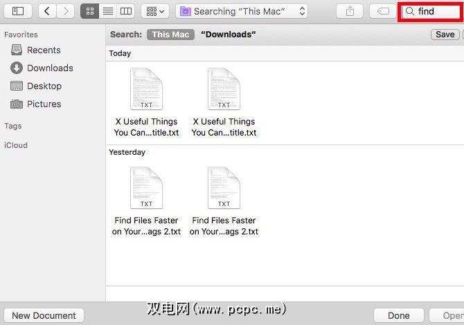 如果您无法在应用程序的打开对话框中找到特定文件,请按 Command + F 并让macOS Search为您查找文件。实际上,让搜索机制每次都为您找到文件比在文件夹之间导航要查找要容易和快捷得多。