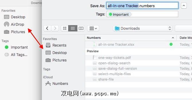 如果您认为“打开/保存"对话框中的侧边栏仅是Finder中侧边栏的反映,请三思!您可以在任何一个对话框中自定义边栏,更改会显示在另一个对话框中,更不用说所有应用程序了。此外,即使您关闭并重新打开应用程序,更改也会保留。