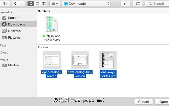 如果您在按住 Shift 键或 Command 键时按住查看“打开"对话框,您可以选择多个文件并一次将其全部打开。文件的类型不同并不重要-您可以选择相同的文件。当然,与当前应用程序不兼容的格式的文件将显示为灰色,并且您将无法选择它们。