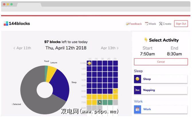 将您的一天分成几小块,然后看看它们的去向。博客作者Tim Urban在他受欢迎的博客Wait But Why中展示了这个简单的想法。您可以使用144blocks来尝试这种想法,这是一种在线时间跟踪器,可以将一天中的1440分钟分成144个彩色小块。
