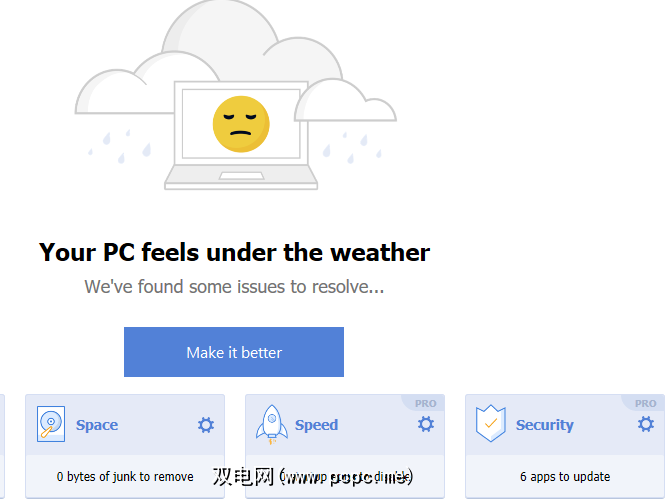 新的运行状况检查是打开CCleaner时看到的。这会在您的PC上进行扫描,以显示四个区域中的“问题":