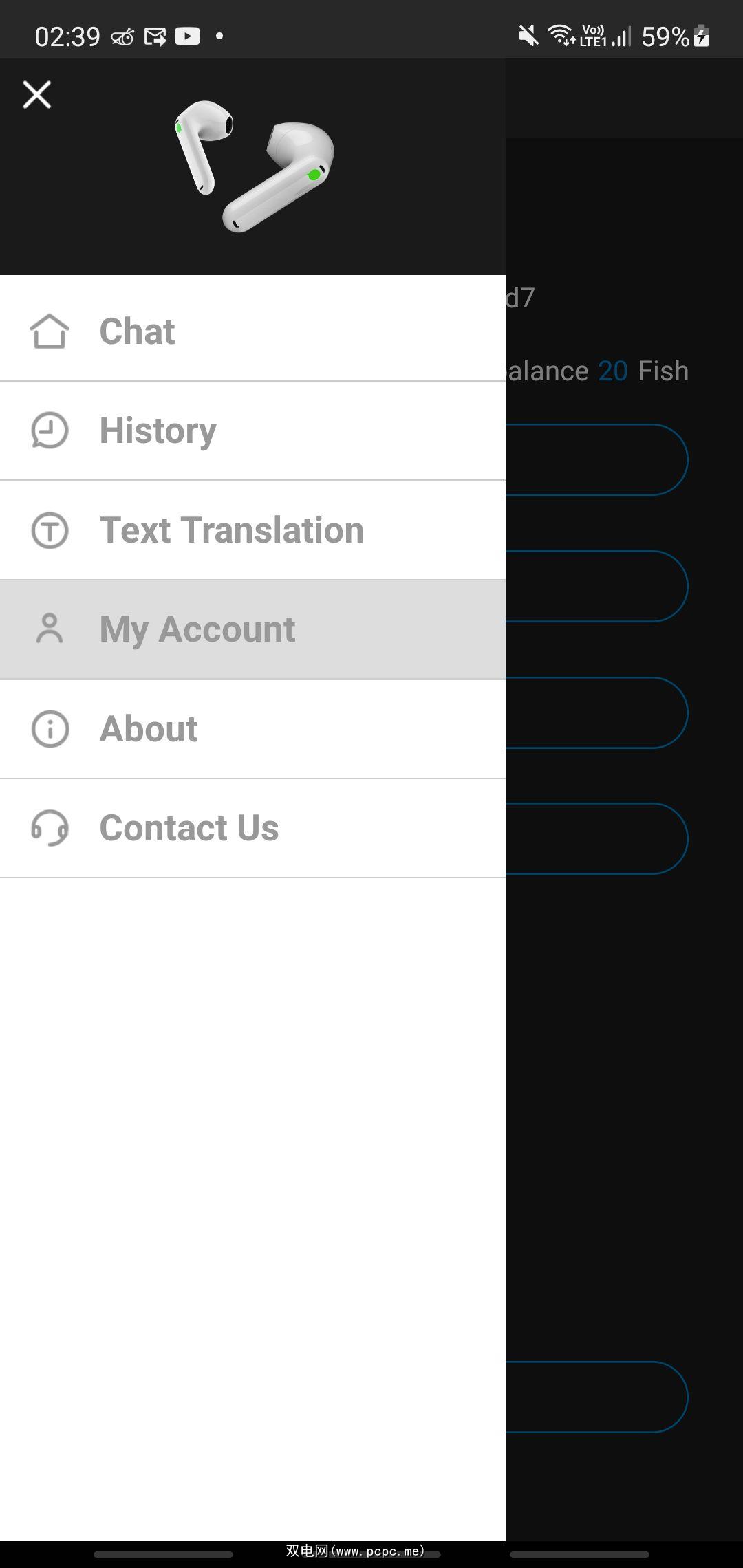 为此,将耳塞连接到手机,您需要单击左上角的菜单并选择我的帐户。单击“兑换鱼卡”,然后在卡背面输入 PIN 码。