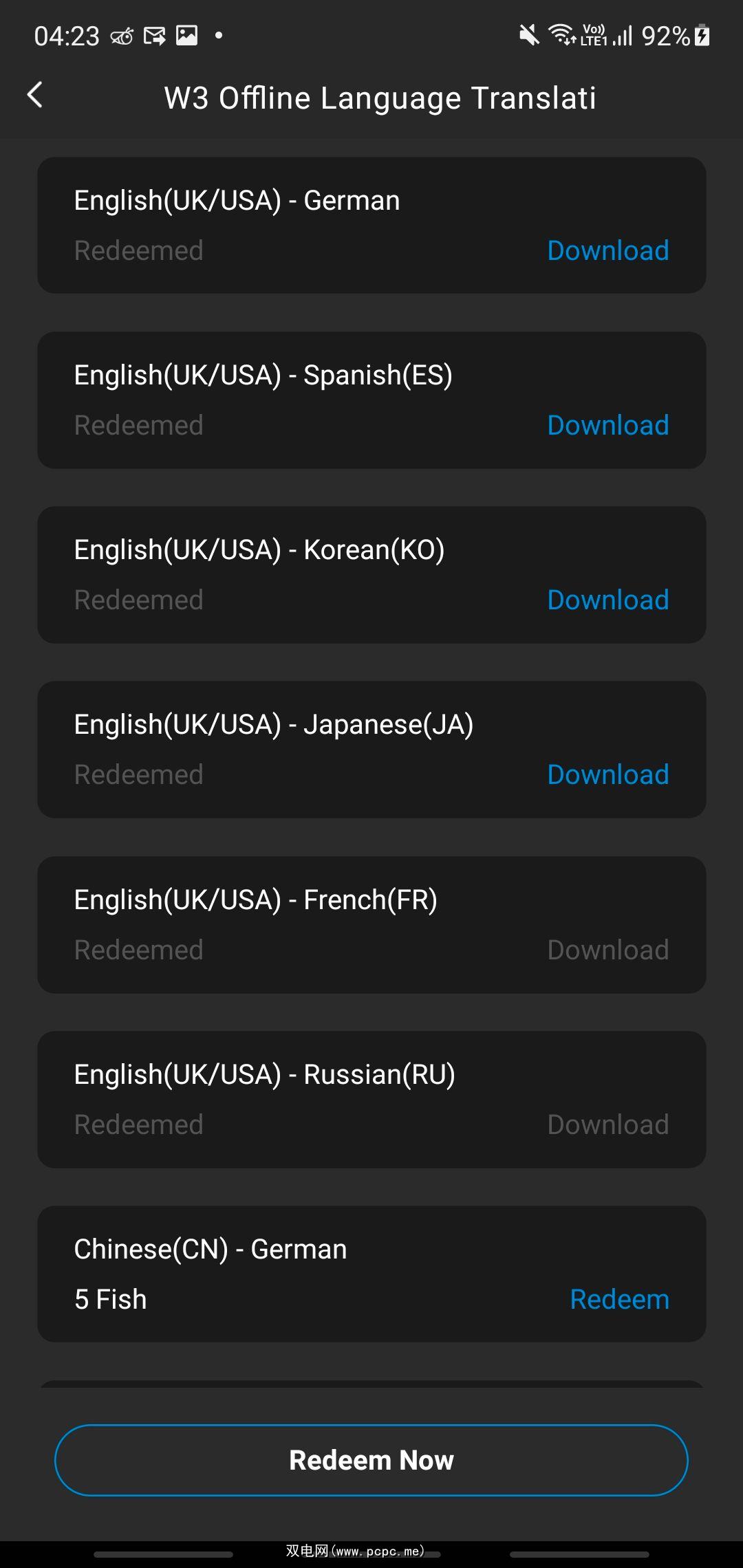 成功加载 30 个 Fish 积分后,您需要前往Timekettle 商店,选择W3 离线语言翻译包,然后选择您要兑换的语言包。