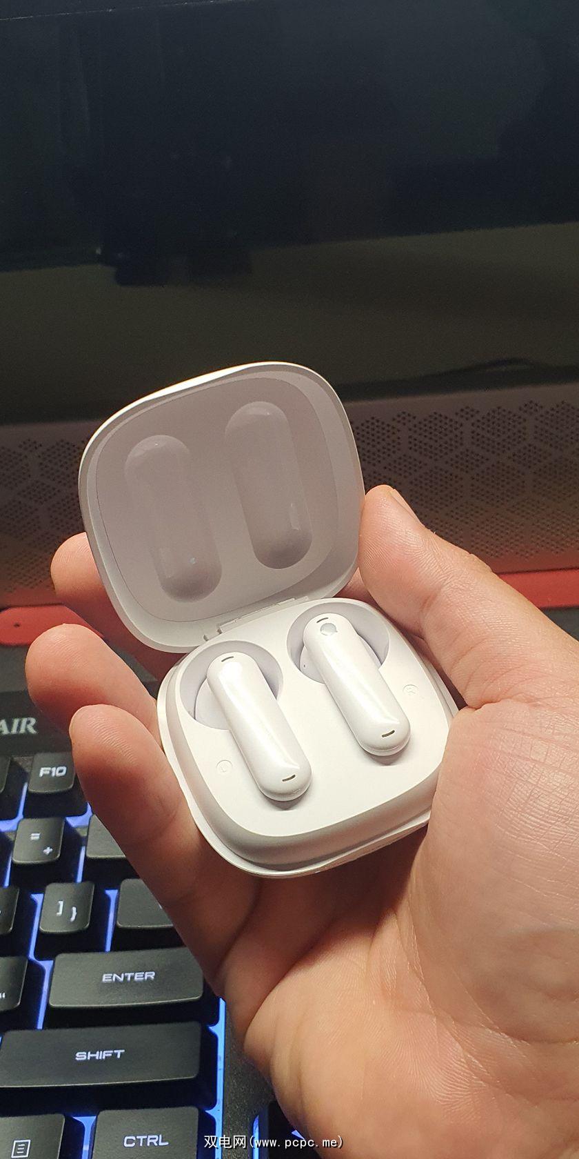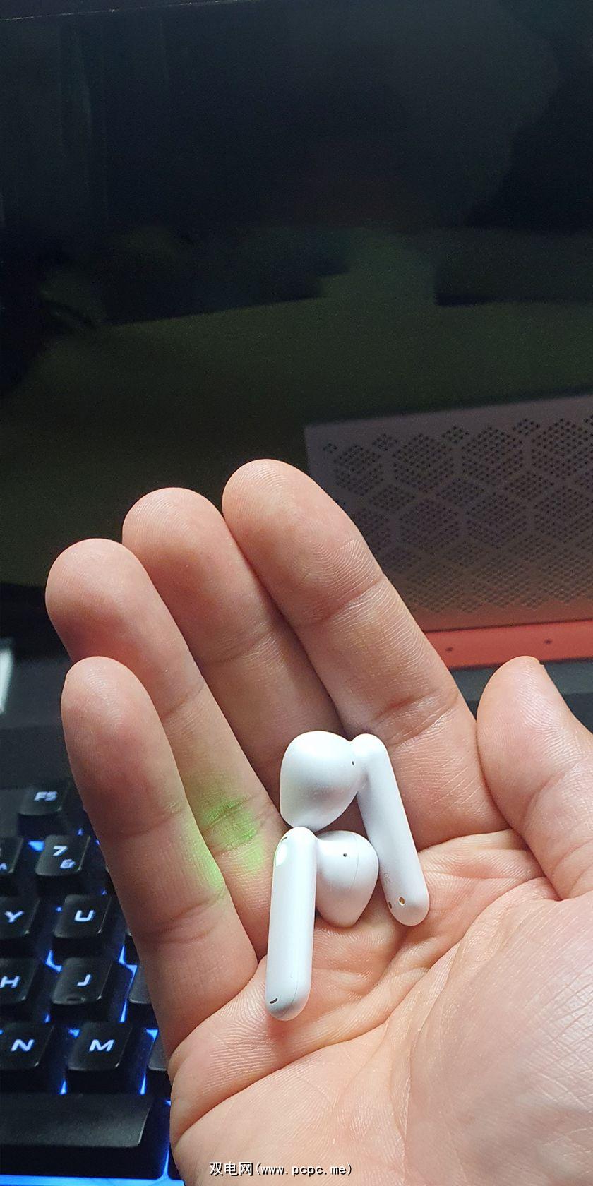 白色耳塞本身每个约 1.3 英寸,紧贴耳朵。即使没有耳夹和硅橡胶尖端,也很难让它们意外地从您的耳朵上脱落。