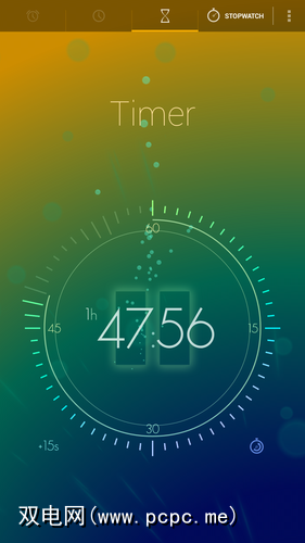 除了闹钟外,您还可以将Timely用作计时器和秒表。计时器界面使用了一个径向拨盘,您可以旋转该刻度盘来设置所需的倒数间隔-与高度抛光的计时器应用Ovo所使用的机制完全相同。