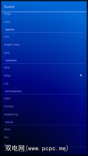 最后,在一个区域中,及时警报提供的功能比“温和警报"或“拼图警报"更丰富:包括声音。该应用程序附带了许多捆绑的唤醒声音,被仔细地分为“平滑",“谐波",“乐器"等类别。不仅有多种唤醒音调,而且实际上令人惊讶地令人愉悦且优美。想一想,闹钟的闹钟声音是您最常与之互动的内容之一-在您选择了自己喜欢的设置很长时间之后,您仍然会在每个工作日听到此闹钟(除非您很幸运)。因此,提供大量可能的声音供您选择是很有意义的:
