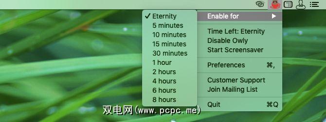Owly为您提供了一些预设的持续时间,以防止Mac进入睡眠状态。 按住Control键并点击,通过菜单栏中的图标可以切换应用功能。默认情况下,Owly会使Mac无限期保持唤醒状态,但是您可以将默认设置更改为与应用程序设置不同的预设。