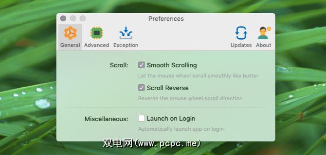 安装应用程序后,您将看到鼠标滚动方向与触控板滚动相反方向。访问应用程序的设置以进一步控制鼠标的滚动行为。