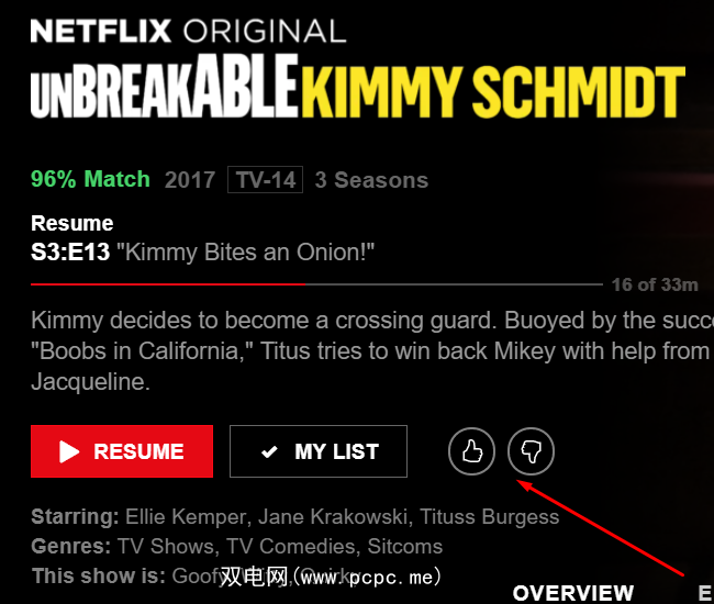 评分按钮也会出现在未观看的标题上。但是,在这种情况下,还有一个匹配百分比。