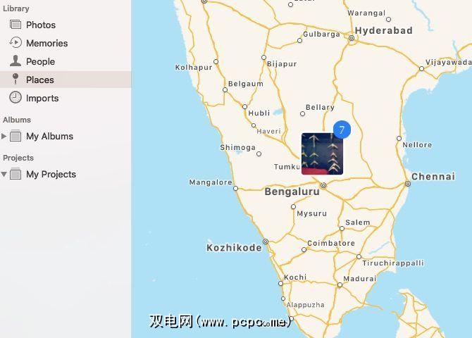 所有分配了位置的照片都会显示在侧边栏位置部分的交互式地图上。单击显示在特定位置的缩略图,您将获得分配给该位置的所有照片的网格视图。
