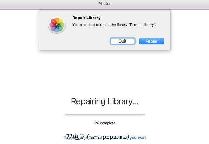 点击修复在出现的对话框中,单击strong>按钮,其余的由内置修复工具完成。它可以解决数据库中的任何问题和不一致之处,以使“照片"应用程序再次运行。