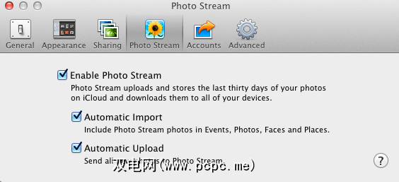 请注意,在“首选项"中,您可以选择将任何照片导入到自己的Mac上的iPhoto图库也将被复制并发送到Photo Stream。这些图像将同步到您的其他设备。