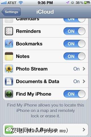 同样,在iOS 5设备上,打开设置应用程序,向下滚动并点击 iCloud ,然后启用照片流。