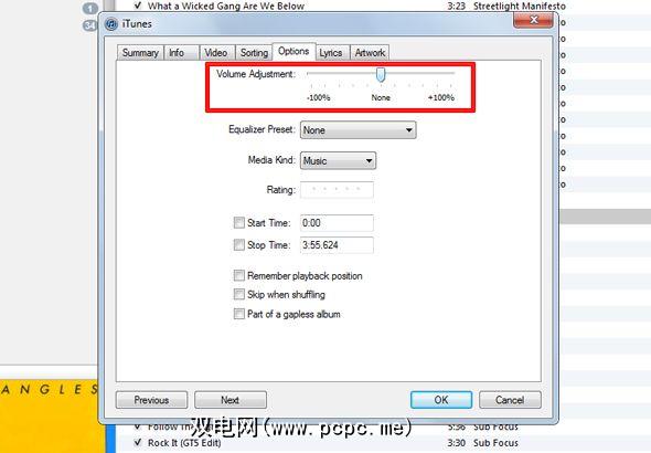 您可以完全按照此方法来调整单首歌曲的音量。只需右键单击原始歌曲,单击获取信息,然后转到歌曲的选项。