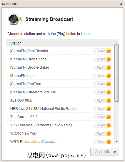 我不确定还有多少人仍在使用基于软件的Internet流,尤其是诸如Pandora和Songza之类的服务很受欢迎,但是GOM Audio列出了广播电台列表,以防您自己的播放列表过时或您想发现一些新音乐。如果您有一些默认列表中未包含的URL,请随时添加自己的Internet广播URL。