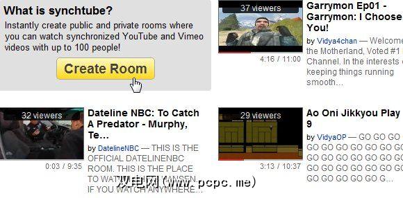 何时您首先进入SynchTube网站,您不会立即获得邀请他人的房间。主页包括您可以加入的许多现有公共房间,以及一个大按钮,可让您创建自己的房间。一旦单击它,便进入房间,并可以开始查找视频并邀请人们。
