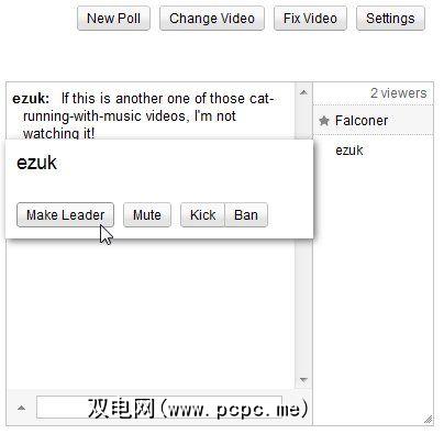 SynchTube允许您在聊天窗口上轻松更改昵称,当您的朋友加入时,除了与他们聊天之外,您还可以选择由他们负责,还可以踢,禁止或静音他们!我当然希望不会出现这种情况,但是这些选项可能在那里,因为SynchTube上的房间可以是公共的。您可以使用“设置"按钮以及其他一些功能(例如对视频启用投票)来更改此设置。