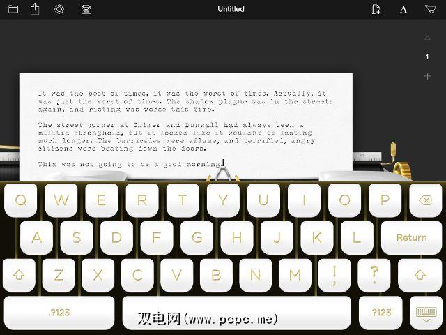 如果您要使用文本编辑器,感觉更现代可以关闭声音和动画,将打字机模拟器变成一个简单,吸引人的iOS文本编辑器。但是,您找不到的一件事是自动更正。它没有选择,我也指望它不会很快出现。出于这个原因,我发现最好将该应用程序与蓝牙键盘配合使用,以便我可以更准确地键入内容。
