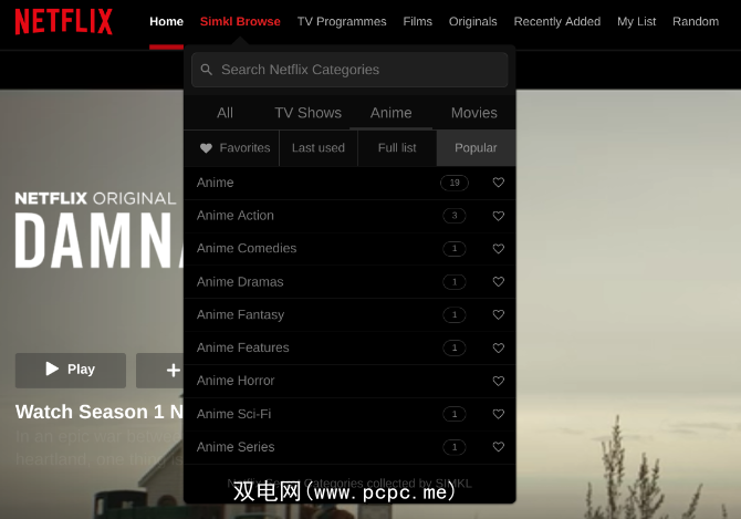 Simkl还添加了上述浏览功能以查找秘密类别。您可以按电视节目,动漫或电影对它们进行排序,然后选择所需的代码。该扩展程序还包括一个根据您的喜好进行的“随机电影推荐",有点像经典的Netflix Roulette。