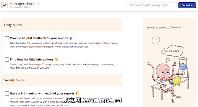 将其设置为浏览器的主页,以便每天弹出“经理清单"以提醒您需要做什么。正如Atul Gawande在他的《检查清单宣言》中所言,使用检查清单比待办事项清单更有效率。