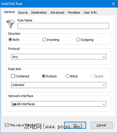如果您对此感到满意,则由于其良好的规则自定义功能,因此值得一试。按 Ctrl + N 开始创建规则。在每个标签之间移动以查看所有选项,但请确保命名您的规则并设置所需的费率限制。完成后,单击确定以激活您的规则。