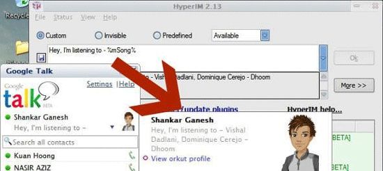 例如,我正在听%mSong%会在所有媒体播放器中插入当前正在播放的歌曲名称即时通讯程序状态。您可以向HyperIM中添加各种各样的插件,例如,有一个插件可与uTorrent一起使用,并向您的好友展示您的洪流上传/下载统计数据。