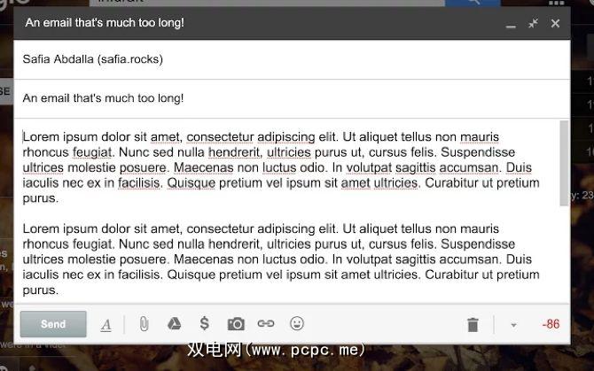 Chrome扩展程序Gmail简报会迫使您明智地选择单词。就像Twitter强迫您使用140个字符以下的文字一样,Brief施加了125个单词的限制。如果您输入的字数超过125个,将无法发送电子邮件。底部的方框显示您写了多少个单词或结束了多少个单词。
