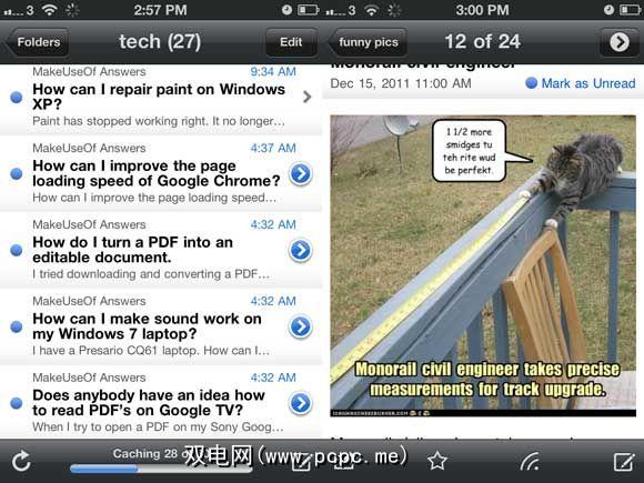 尽管Reeder是我的iPad和Mac首选的RSS阅读器,但我更喜欢Byline的速度和简洁性供我的iPhone使用。我不需要大量功能的精心设计的经验,而只是一种方法,每天浏览源(链接)中提供的300多个故事并标记一些内容以供进一步阅读。 Byline与Google可以很好地同步,并提供基本且快速的界面,并且在我不看时可以缓存图像。
