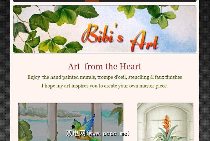Weebly的最佳用途可能是在线创建个人资料,或创建作品的虚拟作品集-特别是如果您是艺术家。 Bibi的艺术就是最好的例证。该网站汇集了由艺术家“ Bibi"创作的手绘艺术品和壁画。不幸的是,网站上没有有关该艺术家的其他识别信息!