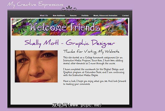 设计非常简单,就像Chris的个人资料网站一样,但是在这种情况下简单确实增加了页面的美感。它有一个脚本编写良好的下拉菜单用于导航,其中Shelly可以窥视她的摄影,Photoshop作品,手工制作的珠宝甚至雕塑。标头是很酷的字体,很明显是Shelly自己绘制的。浮动框的框架很好,无论您浏览器窗口的大小如何,它都具有专业的触感。