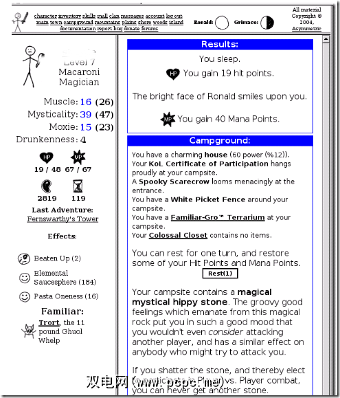如今,大多数游戏都是图形密集型游戏,没有真实故事情节。这两个游戏很有趣,将打开您的思维和想象力!第一个是基于文本和ASCII图形的,第二个是完整的Flash RPG!享受。