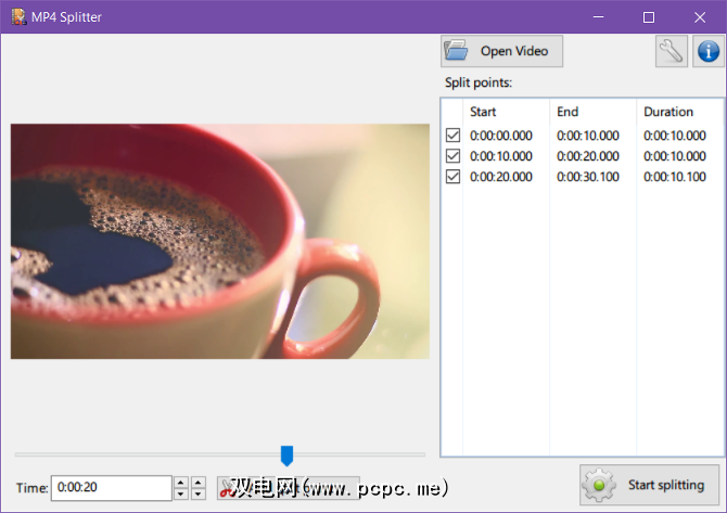 分割就像加载视频文件,添加“分割点",然后单击开始分割一样简单。合并甚至更容易:添加单个视频文件,然后单击加入。