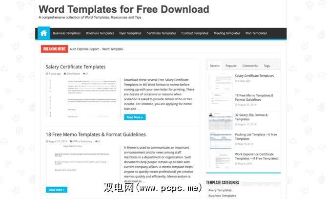 Microsoft Office模板最喜欢的是Vertex42。该网站主要集中于Excel模板,但您也会找到Word的不错选择。在顶部,您会看到 Word模板的导航按钮。只需单击该按钮,便可以进入他们的完整列表。