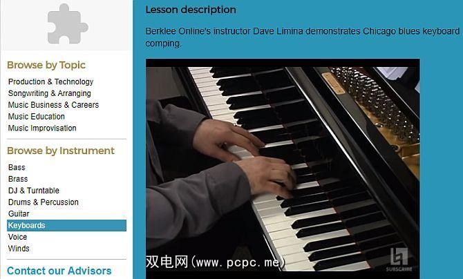 从2003年开始,伯克利音乐学院开始在线提供免费音乐课程。这些课程包括吉他,铜管乐器,贝斯,甚至DJ和转盘培训。当您点击“键盘"部分时,您会找到以YouTube视频格式或PDF文档形式的13节课程的列表。视频大约需要一到两分钟,而PDF文档平均大约需要两页,其中嵌入了音乐剪辑。
