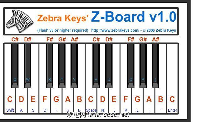 每个键都很清楚布局,每个音符的字母都显示在琴键的下方,这使学习每个琴键附带的音符变得更加容易。学完几节课后,想尝试弹奏一首歌– Zebra Keys提供了Z-Board V1.0,这是一个虚拟键盘,上面显示了所有音符和和弦。