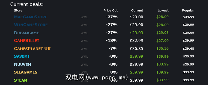 如果价格是您的唯一标准,那么您需要这个网站。但是“是否有任何交易"还列出了没有交易就出售游戏的商店。这样,您就可以将网站用作“我可以在哪里购买此游戏?"工具,而不仅仅是交易比较器。