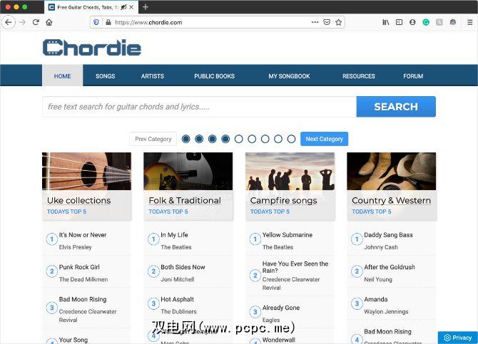 4。 Chordie:搜索和弦或歌词以查找歌曲