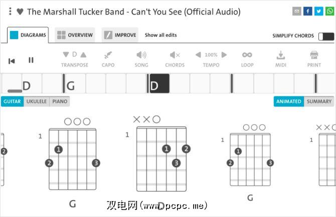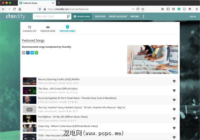 有时,即使您不知道歌曲的演奏情况,您也想学习一首特定的歌曲。 Chordify非常适合这些情况。该网站具有超清晰的界面,带有大的和弦图,可在歌曲实时播放时进行更新。