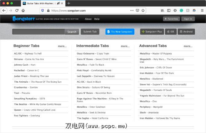 Songsterr网站有两个版本。较新的版本具有一个互动式播放器,该播放器带有选项卡,可播放超过500,000首歌曲。这里的许多歌曲甚至都允许您从多个乐器声部中进行选择。