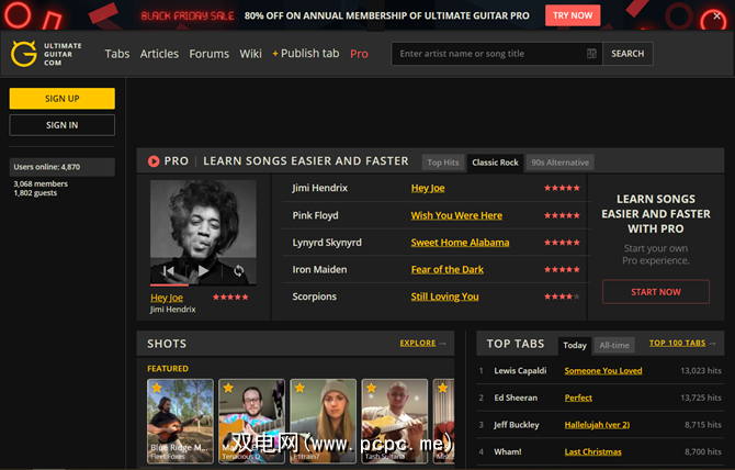 Ultimate Guitar受益于庞大的吉他手社区,他们为网站贡献了和弦与标签。您还将找到可以练习的几种不同版本的歌曲。