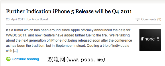 iPhone Hacks提供了很多有关您可以为iPhone买到和做的事情的信息,但它们也有一个不错的Rumors页面,可让您关注最新的八卦。它不是那里最漂亮的网站,但是信息非常可靠。