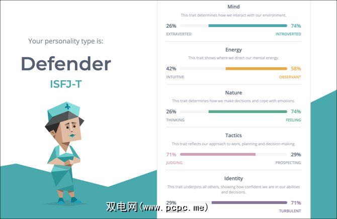 完成后,您会从分析师,外交官,哨兵和资源管理器四个类别的16个选项中查看自己的性格类型。借助易于理解的图表,您将了解自己的思想,精力,战术以及身为他人的其他部分。