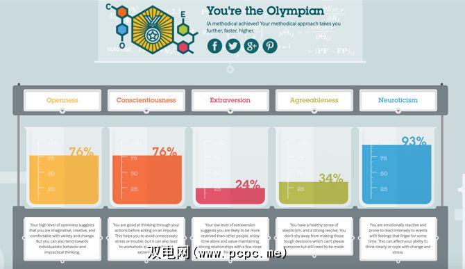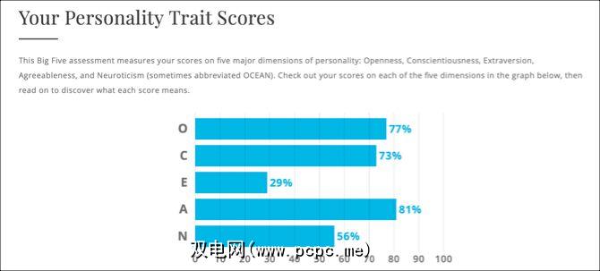 完成后,您会详细了解这五个人格特质的分数。另外,您可以阅读这些元素如何结合起来以适合您的个性。