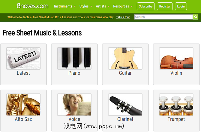 8notes将其内容分为三个部分:乐器,样式和艺术家。这意味着无论您专攻哪种音乐,都可以找到适合自己需要的音乐。网站上几乎所有的乐谱都带有随附的MP3或MIDI文件,因此您在浏览其余内容时可以收听曲目。