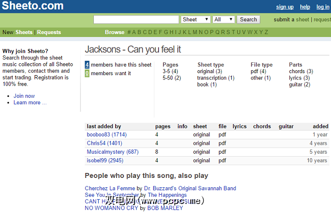 Sheeto与本文中的其他站点采用的方法稍有不同。它鼓励用户在彼此之间交换乐谱,而不是提供无限下载的库。