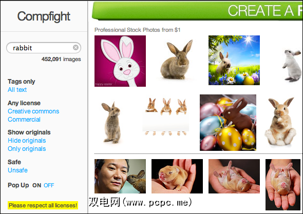 像Flickr吗?尝试打架。视觉搜索引擎可在寻找所需图像时提供干净的体验。它从Flickr中提取所有图像,但您可能知道,Flickr偶尔会出现故障。当您需要立即查找内容时,这将是一个很好的备份。
